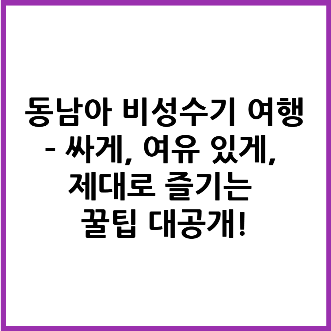 이번 포스팅에서는 동남아 비성수기 여행의 장점, 여행 시기, 추천 지역, 날씨 및 준비 팁까지 완벽하게 알려드릴게요!