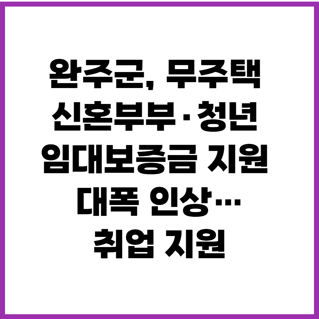 완주군의 무주택 신혼부부와 청년을 위한 임대보증금 지원 대폭 인상 정책은 단순한 주거 안정 지원을 넘어 취업 지원과 청년들의 자립적 생활을 돕는 중요한 정책입니다. 이 정책은 주거지 안정과 취업을 동시에 지원하여, 청년들이 경제적 자립을 이루고 지역 사회와 함께 성장할 수 있는 기반을 마련해 줍니다. 완주군의 이러한 지원은 앞으로도 많은 청년들에게 희망을 주고, 경제적 자립을 위한 실질적인 도움을 줄 것입니다.