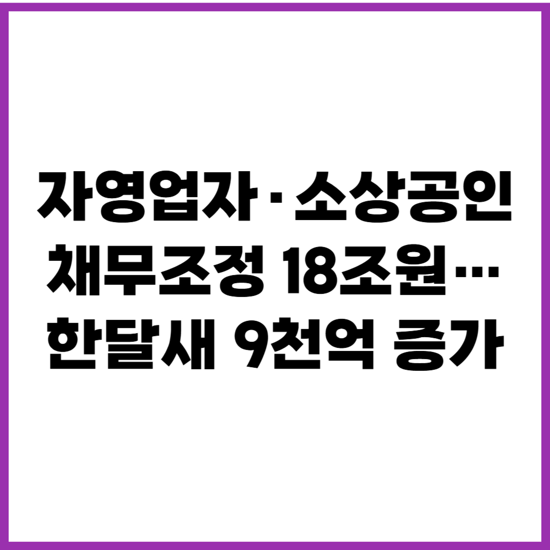 최근 자영업자와 소상공인들의 채무조정 규모가 18조 원에 달하며, 한 달 만에 9천억 원이 증가한 것으로 나타났습니다. 이 통계는 우리나라 소상공인 경제의 어려움을 잘 보여주며, 최근의 경제 상황과 정부의 지원책이 어떻게 실효를 보고 있는지에 대한 중요한 지표로 작용하고 있습니다. 이번 블로그에서는 자영업자와 소상공인 채무조정의 현황과 그로 인한 영향, 그리고 이를 해결하기 위한 정부의 지원 대책에 대해 상세히 알아보겠습니다.