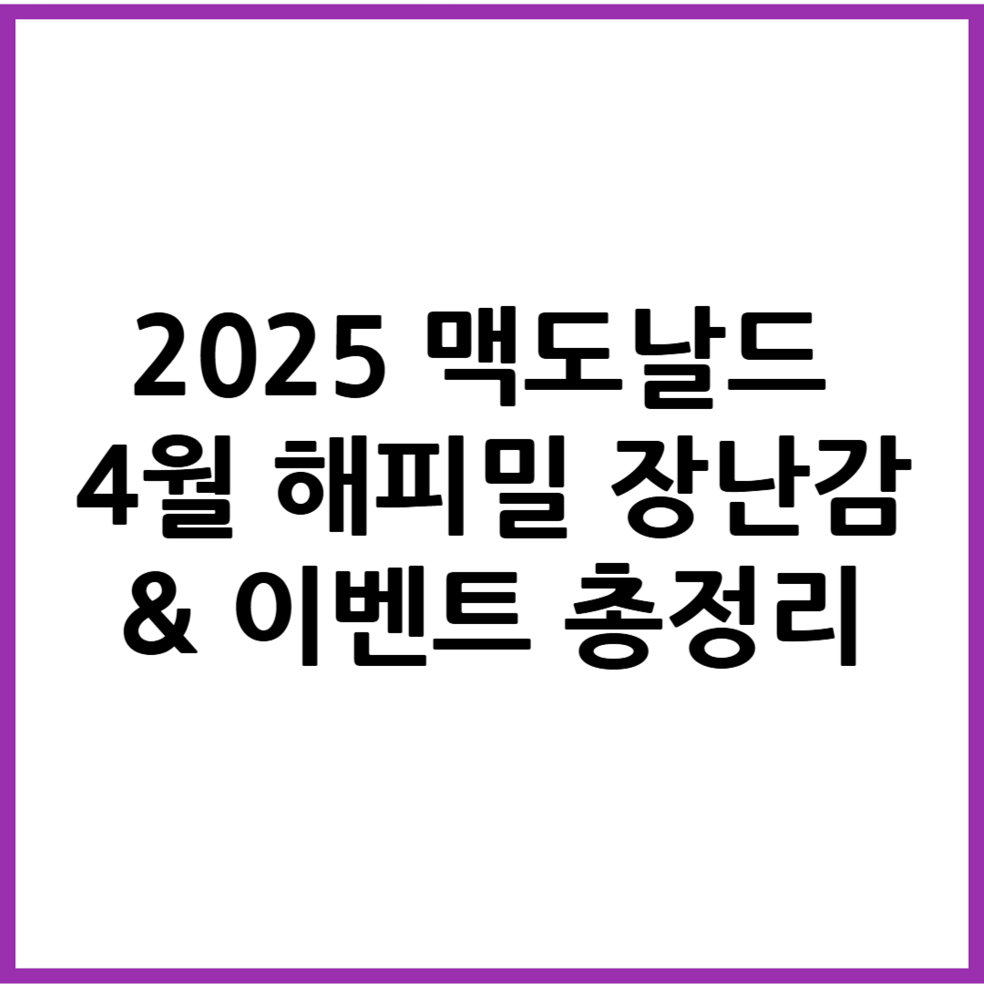 2025년 4월 맥도널드 해피밀이 새로운 시리즈로 돌아왔습니다. 매달 기대되는 한정판 장난감부터 다양한 혜택과 이벤트까지! 이번 4월 해피밀은 어떤 캐릭터와 함께하는지, 구성, 가격, 수령 팁, 재입고 일정까지 상세히 알려드립니다.